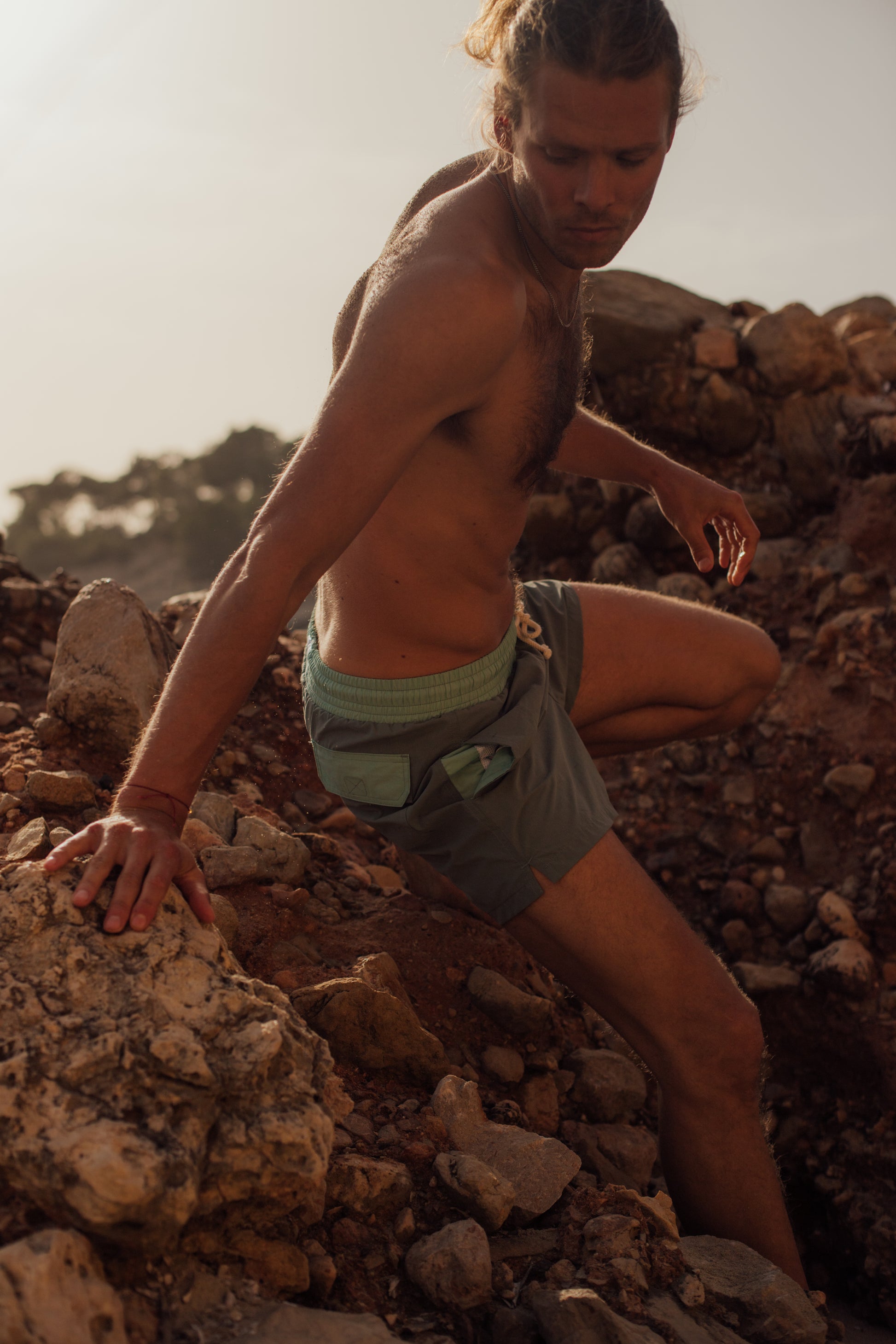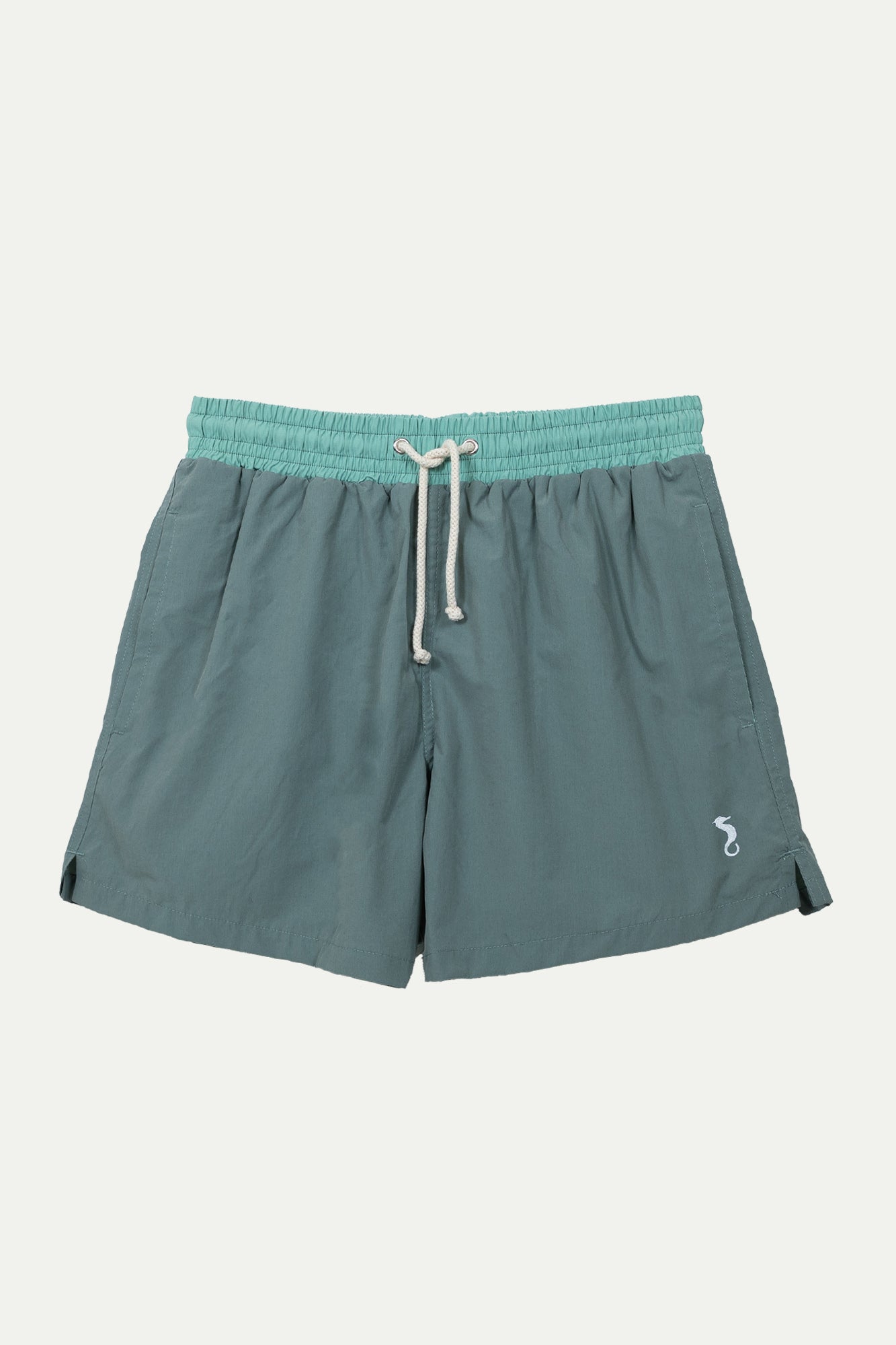 Bañador BARBARIA. Modelo Bicolor de bañador para hombre. Su cintura es elástica con cordón que se ajusta para mayor comodidad, tonalidad diferente a las perneras. Bolsillos laterales de fácil acceso y bolsillo trasero con solapa y velcro. Lleva bordado en la parte izquierda nuestro caballito de mar del mismo tono que el cordón del bañador.