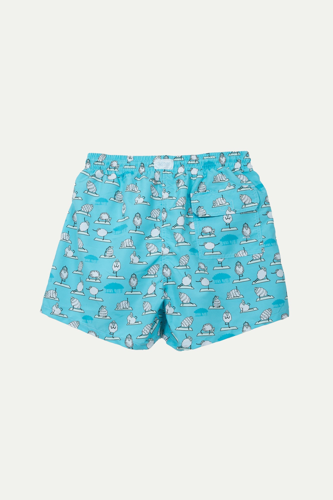 Bañador Barbaria de la Colección Ovejas . Modelo para hombre con estampado exclusivo. Su cintura es elástica con cordón que se ajusta para mayor comodidad. Bolsillos laterales de fácil acceso y bolsillo trasero con solapa y velcro.