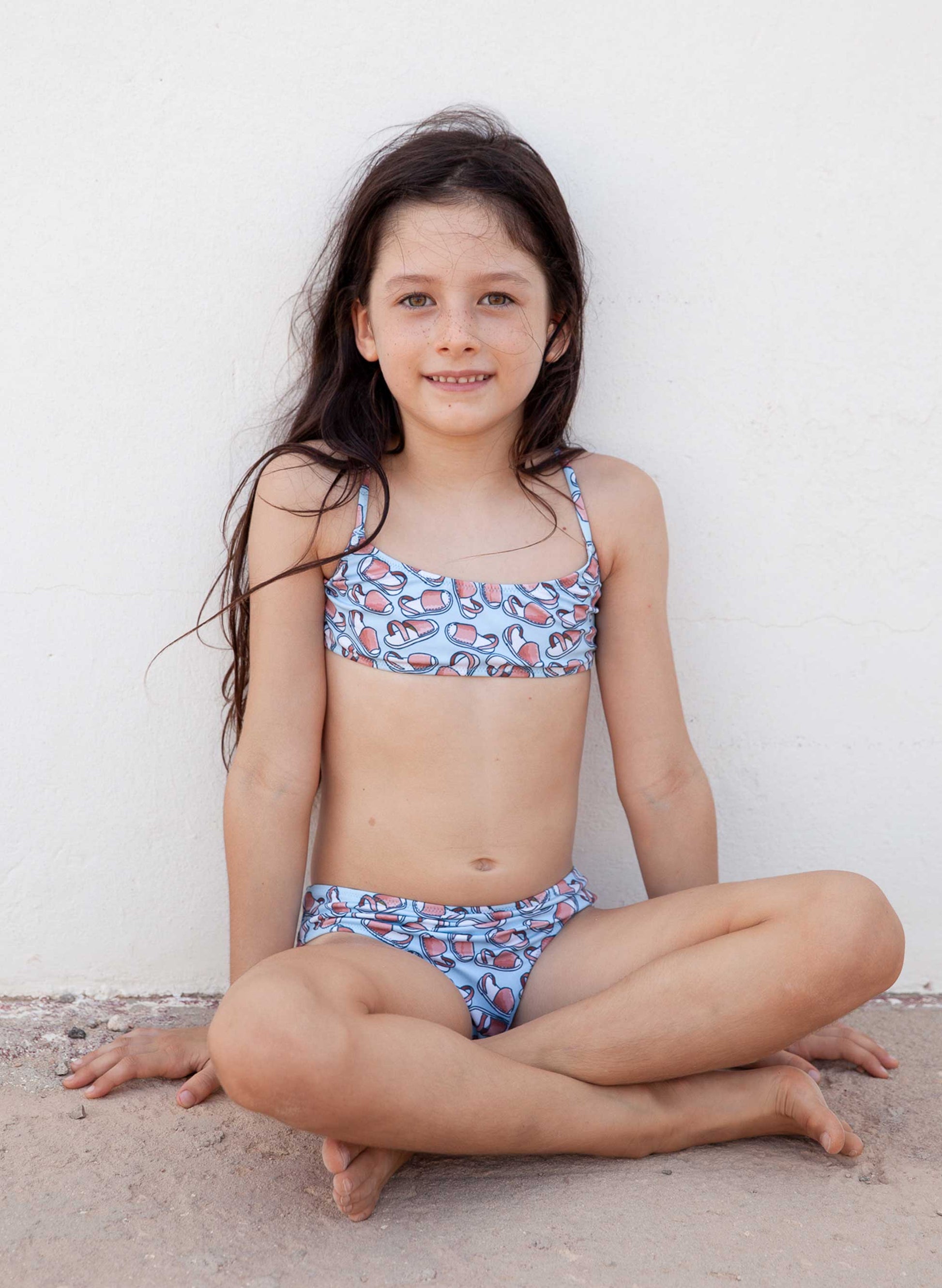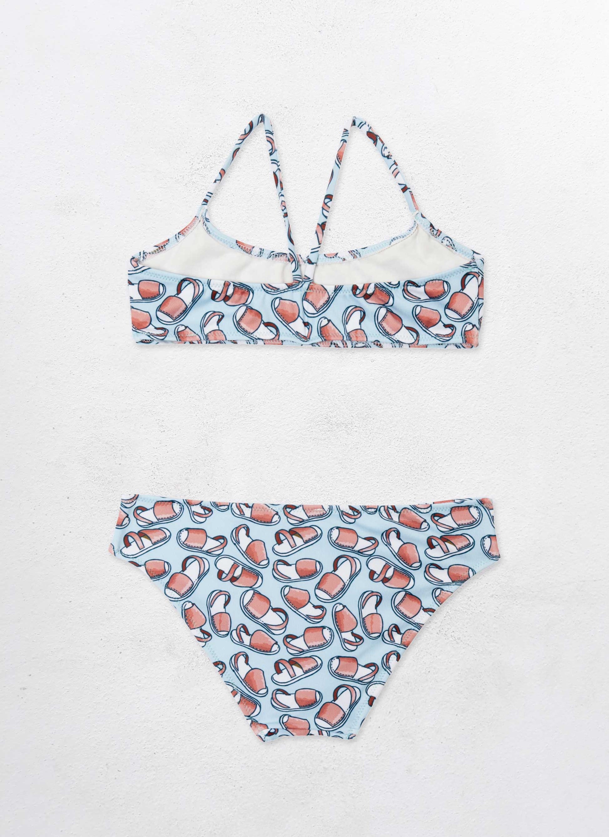Bikini SA PALMERA ILLETE Kids. Wide round neckline top with trim. Recycled fabric with exclusive Dossae Formentera print inspired by elements of the island. It has lining.