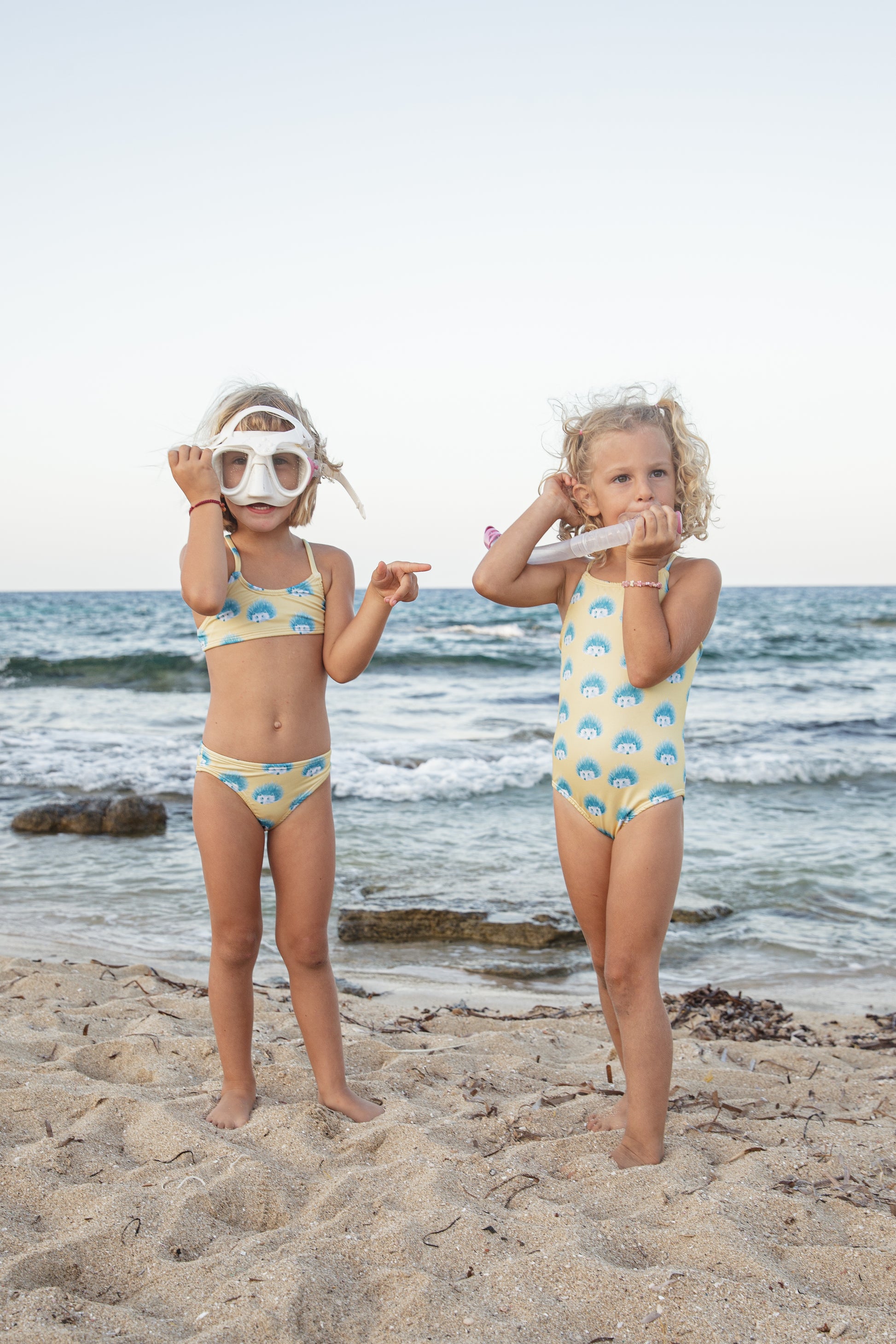 Bikini SA PALMERA ILLETE Kids. Wide round neckline top with trim. Recycled fabric with exclusive Dossae Formentera print inspired by elements of the island. It has lining.