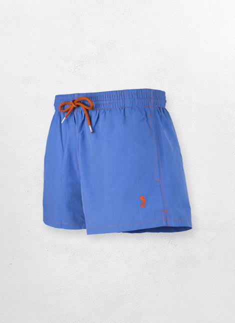 SAONA swimsuit. Short swimsuit model for men . Its waist is elastic with a drawstring that adjusts for more comfort. Easy access side pockets and back pocket. It has our seahorse embroidered on the front in the same color as the swimsuit cord.